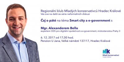 6. prosince 2017 přijal naše pozvání Mgr. Alexander Bellu, expert ODS pro digitální společnost a e-goverment, místostarosta Prahy 3 a zastupitel hl. m. Prahy.