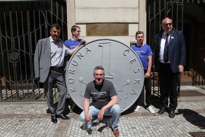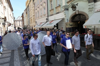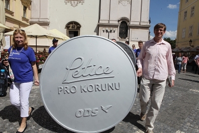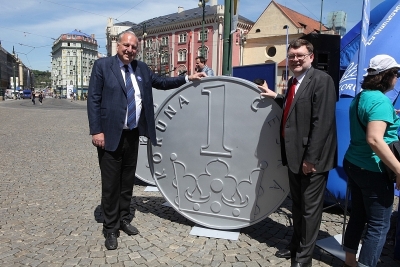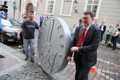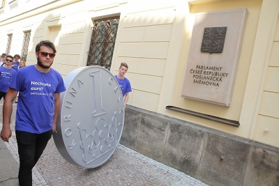 V čele průvodu, který nesl podpisy signatářů petice do Senátu, nesli jeho účastníci tři makety české koruny v nadživotní velikosti. Jednu z nich předali i do rukou předsedy Poslanecké sněmovny Jana Hamáčka. Ten slíbil, že petici projedná i Poslanecká sněmovna, ačkoli to není její povinnost. „Korunami jsme chtěli symbolicky zdůraznit, že bychom se měli držet naší koruny, protože přijetí eura pro nás v tuto chvíli není výhodné,“ vysvětluje Jan Zahradil.