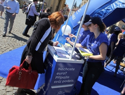 Samu petici, která volá po tom, aby vláda vyjednala trvalou výjimku umožňující nepřijmout euro, pokud s tím nebudou občané souhlasit v jednorázovém speciálním referendu, v Senátu převzal Přemysl Sobotka, místopředseda horní komory parlamentu. Předání podpisů nemělo jen symbolickou hodnotu – Senát je povinen zabývat se každou peticí, která získá přes deset tisíc podpisů. Tento počet petice překročila několikanásobně.