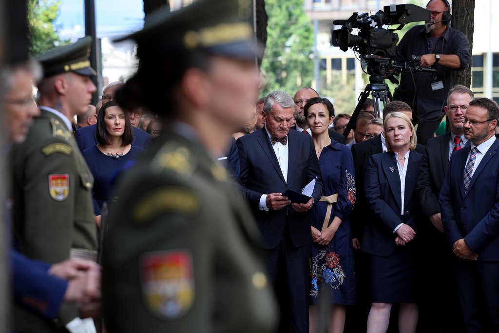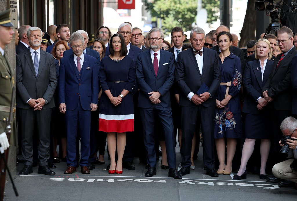 (www.army.cz) 56. výročí okupace Československa vojsky Varšavské smlouvy si dnes před budovou Českého rozhlasu v Praze připomněli nejvyšší představitelé státu v čele s prezidentem Petrem Pavlem. Věnec k pamětní desce položila také ministryně obrany Jana Černochová v doprovodu náčelníka Generálního štábu AČR generálporučíka Karla Řehky.