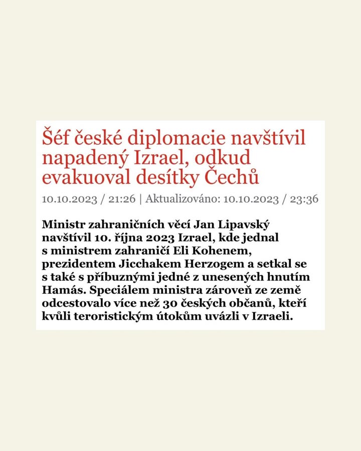 Premiér opět lže o repatriacích z Izraele po útoku Hamásu v roce 2023. První repatriace proběhly 10. října, kdy Jan Lipavský vzal na palubu vládního speciálu více než tři desítky českých občanů a odvezl je zpět do Česka. Pane premiére, je to trapn… příspěvek na Facebooku