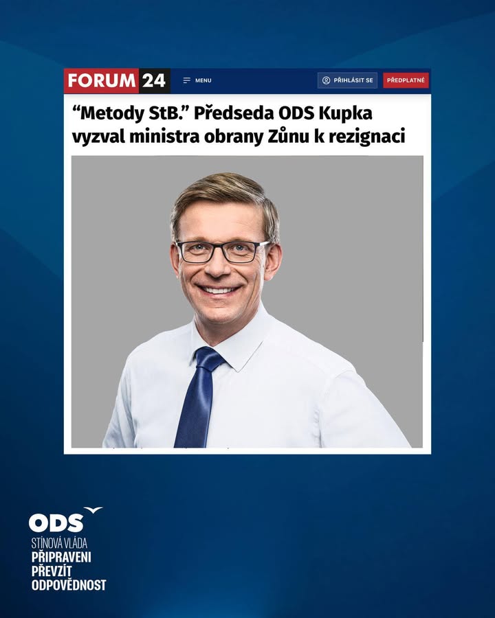Požadujeme rezignaci ministra obrany Zůny Stínový premiér Martin Kupka: „Zítra na plénu Sněmovny navrhneme zařazení bodu Návrat totality: roubíky pro prezidenta a cenzura jako vládní program.“ Bránit prezidentovi v reprezentaci státu a omezovat z… příspěvek na Facebooku
