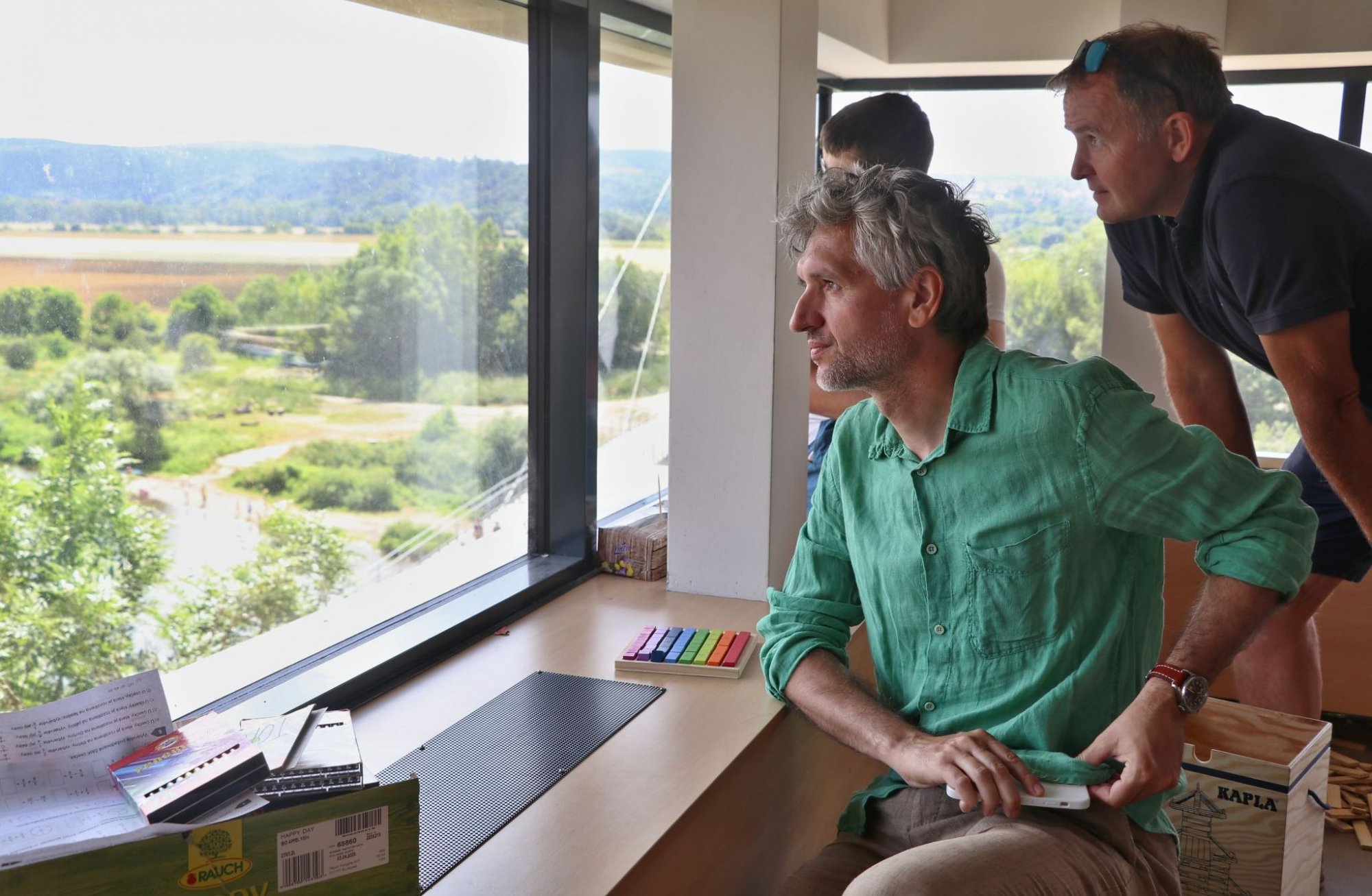 Místostarosta Miroslav Knotek spolu se svými kolegy z vedení radnice a ze zastupitelstva provedli architekta po nejzajímavějších místech městské části. Adama Gebriana zaujalo velké množství různě pojatých veřejných prostranství na obou sídlištích, u řeky, na sportovištích, v rámci Koruny i na dalších místech. Prohlédl si rovněž budoucí podobu Centra Radotín. Žákům ze tříd v nástavbě historické školní budovy pochválil jejich široký výhled do okolí.