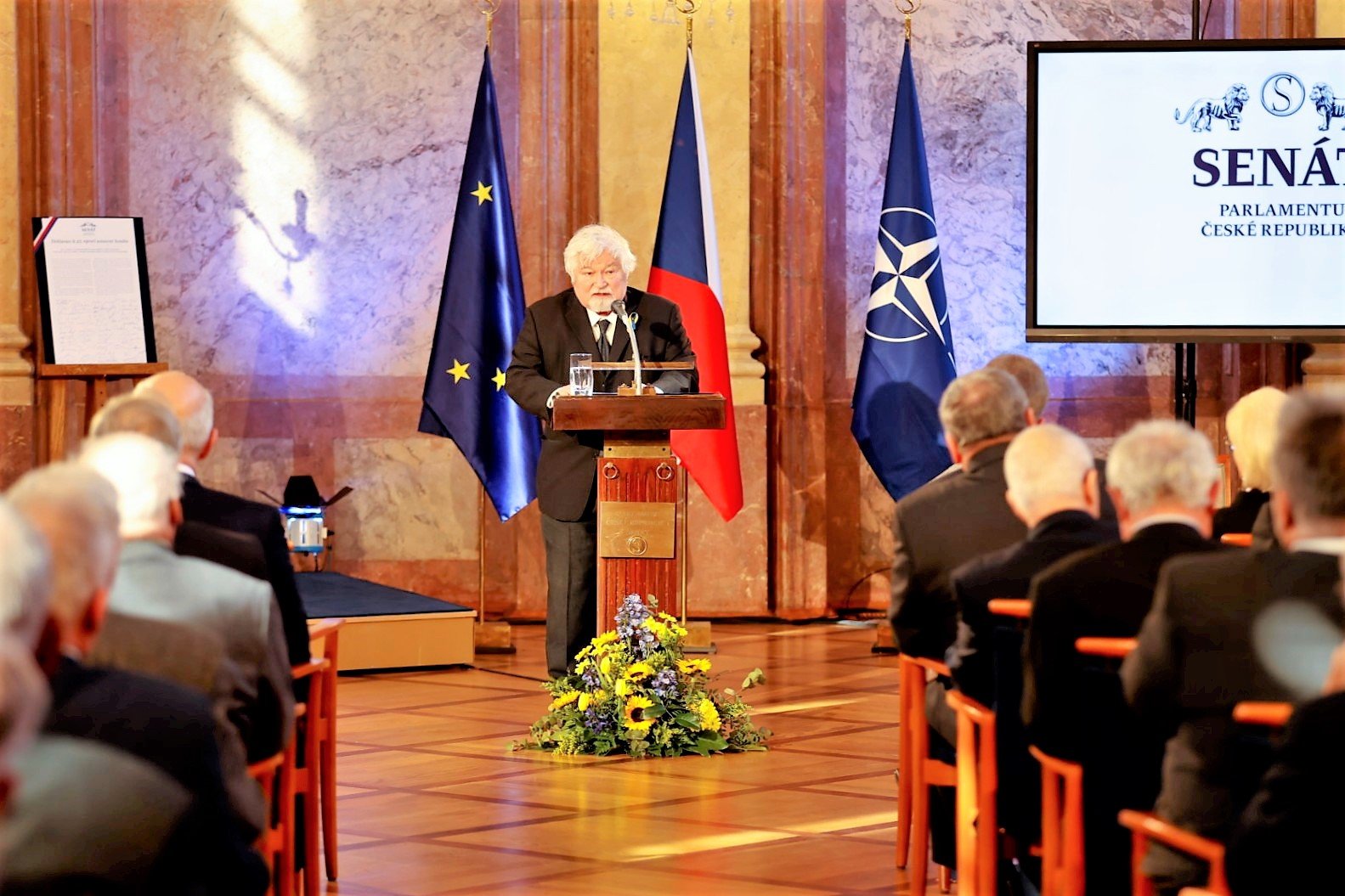 Vývoj ve světě zejména v posledních několika týdnech, konkrétně na evropském kontinentu, ukazuje, že svoboda, demokracie a s ní spojené životní jistoty nejsou samozřejmostí. Ve světle ozbrojeného konfliktu vyvolaného ruskou agresí na Ukrajině o to aktuálněji a s větší silou zaznívají slova deklarace senátorek a senátorů o tom, že být členem horní komory Parlamentu znamená tyto hodnoty vždy aktivně prosazovat a chránit, jinak o ně můžeme přijít. Deklaraci na slavnostním plénu přečetla místopředsedkyně Senátu Jitka Seitlová. Tento dokument podepisovali senátorky a senátoři již během slavnostní schůze v prosinci loňského roku a svůj podpis mohli dnes připojit také další členové senátorského sboru i z let minulých.