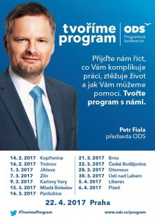 „V následujících dvou a půl měsících budeme dotvářet program pro podzimní parlamentní volby - a už teď vám mohu zaručit, že to bude silný program pro silné Česko. Tři hlavní cíle, se kterými půjde ODS do voleb, jsou jasné: chceme zastavit levicově populistickou vládu, nabídnout program pro aktivní a pracovité lidi. A v neposlední řadě chceme vrátit politice její smysl. Při plnění těchto cílů se chceme zaměřit na čtyři oblasti: na ekonomiku, omezení byrokracie, vzdělání a zajištění bezpečnosti. Nechceme tvořit program od stolu. V nadcházejícím období se proto vydám do všech krajů. Naplánovány jsou jak diskusní stoly s odborníky, tak setkání s veřejností,“ upřesňuje předseda ODS Petr Fiala.