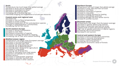 Česko – společně s dalšími státy, které jsou suchem nejvíc postižené – by proto mělo naléhat na Evropskou komisi, aby návrh změnila. Nebude to ale jednoduché. Za prvé, Babišova vláda se do takového postupu nehrne a nepohrne, protože reforma zemědělské politiky směrem k ohleduplnějšímu hospodaření není v zájmu Agrofertu a dalších velkých hráčů na zemědělském trhu. A za druhé, dnešní „zeleno-klimatickou" politiku EU táhnou Francouzi, Holanďané, Dánové, Švédi. Ti všichni stojí za Timmermansovým plánem. Poslední mapka ukazuje proč. Je stará několik let a ukazuje, jak změny klimatu ovlivní budoucnost evropských zemí. Západní a severozápadní Evropu bude trápit příliš mnoho vody, ale naopak ušetří energii na topení. Naopak střední Evropa bude trpět suchem, degradací lesů a požáry. Stručně řečeno: první na boji s CO2 mohou vydělat, druzí (my) to zaplatí. Ano, je to možná zjednodušené, ale platí to.