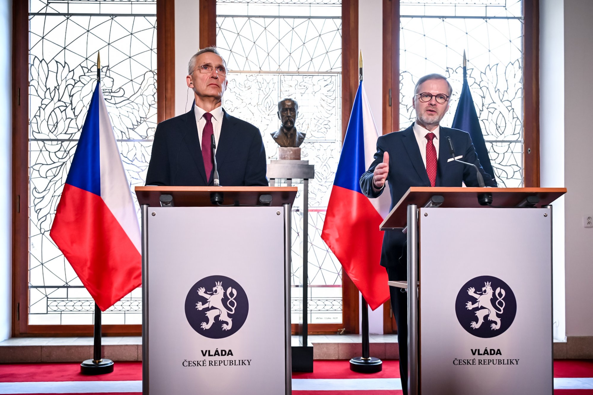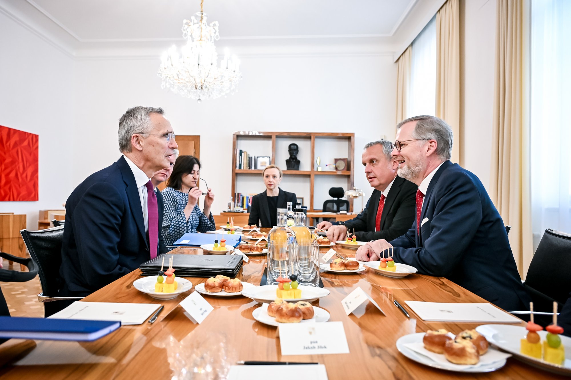 Hovořilo se také o podpoře Ukrajiny. Premiér Fiala představil generálnímu tajemníkovi NATO výsledky pracovní večeře, kterou hostil tento týden v Kramářově vile a kde se sešli předsedové vlád Dánska, Nizozemska, Ukrajiny, Lotyšska a prezident Polska, aby řešili další budoucnost muniční iniciativy pro Ukrajinu.